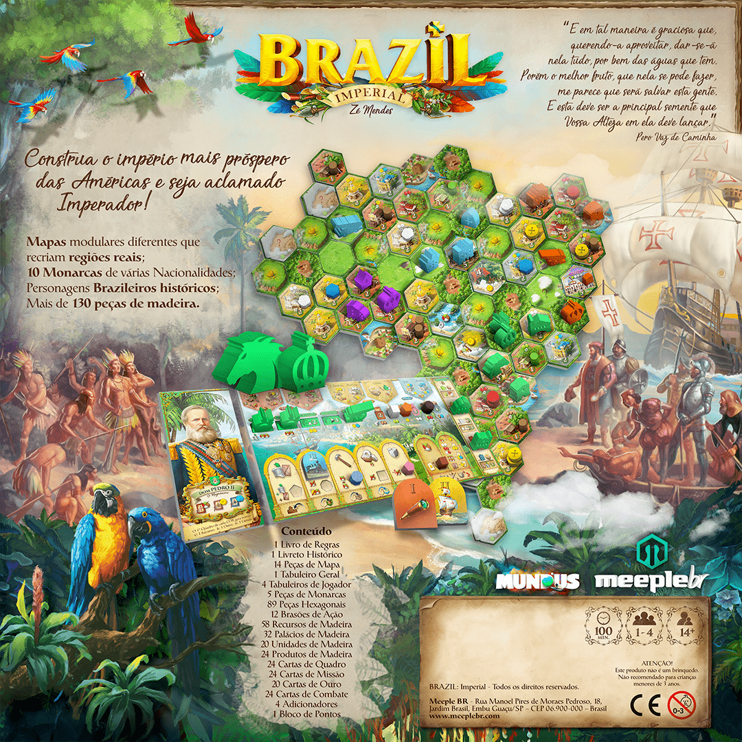 In Brazil: Imperial, you need to construct buildings, manage resources, explore the land, create trade, acquire the support of the greatest personalities of the country, and recruit a powerful army to protect your interest against the rival states. If you make the right choices, you can complete missions to progress to a more advanced era, receiving new interesting options of development and victory points. In the end, the best monarch receives the title of Brazilian Emperor and constructs a new era of prosperity, enlightenment and peace!