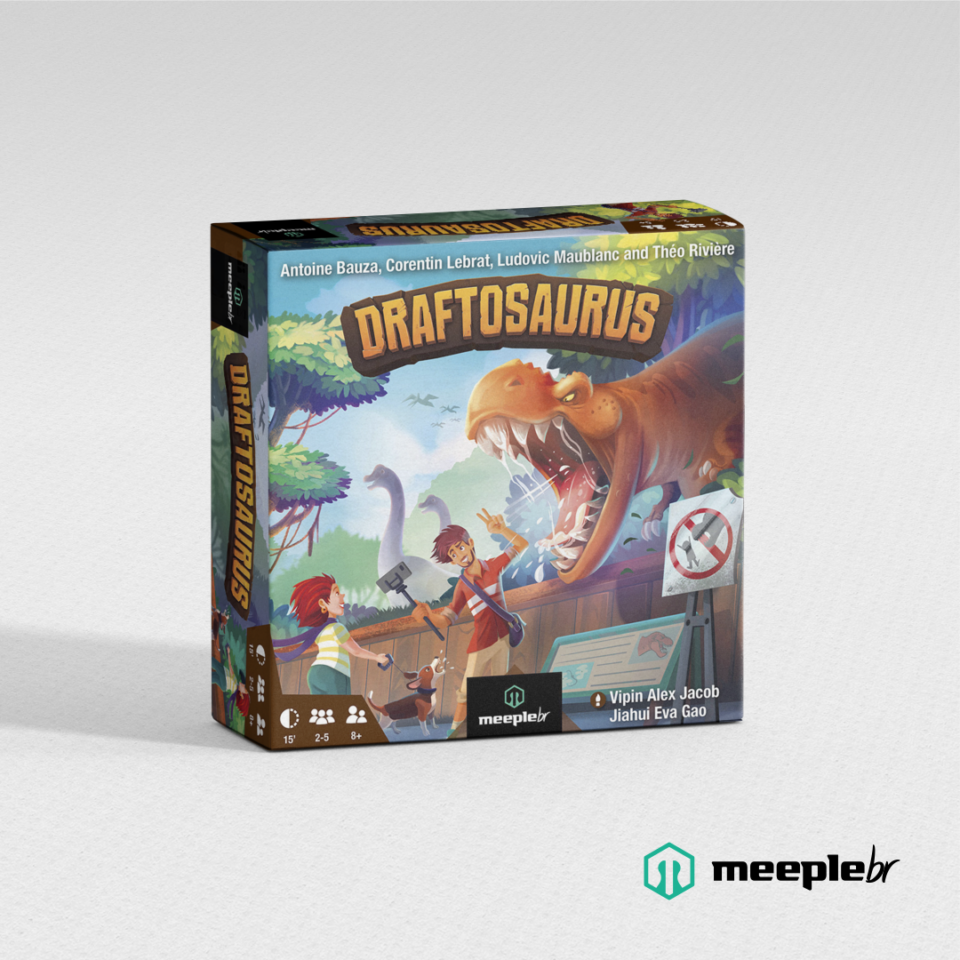 Your goal in Draftosaurus is to have the dino park most likely to attract visitors. To do so, you have to draft dino meeples and place them in pens that have some placement restrictions. Each turn, one of the players roll a die and this adds a constraint to which pens any other player can add their dinosaur.