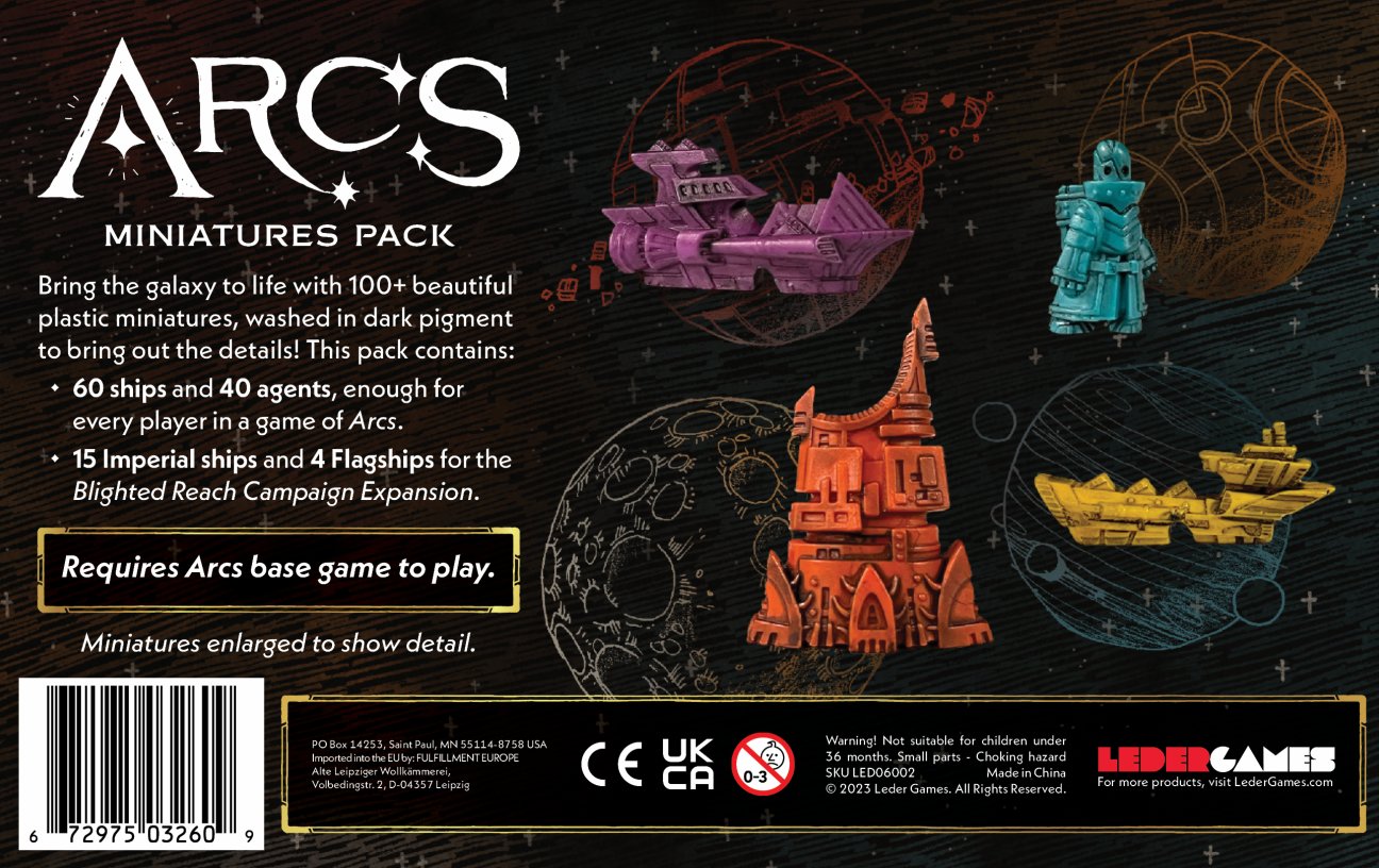 Ele contém miniaturas para substituir todas as figuras de madeira do jogo base Arcs e da expansão da campanha, O Flagelo do Vértice.