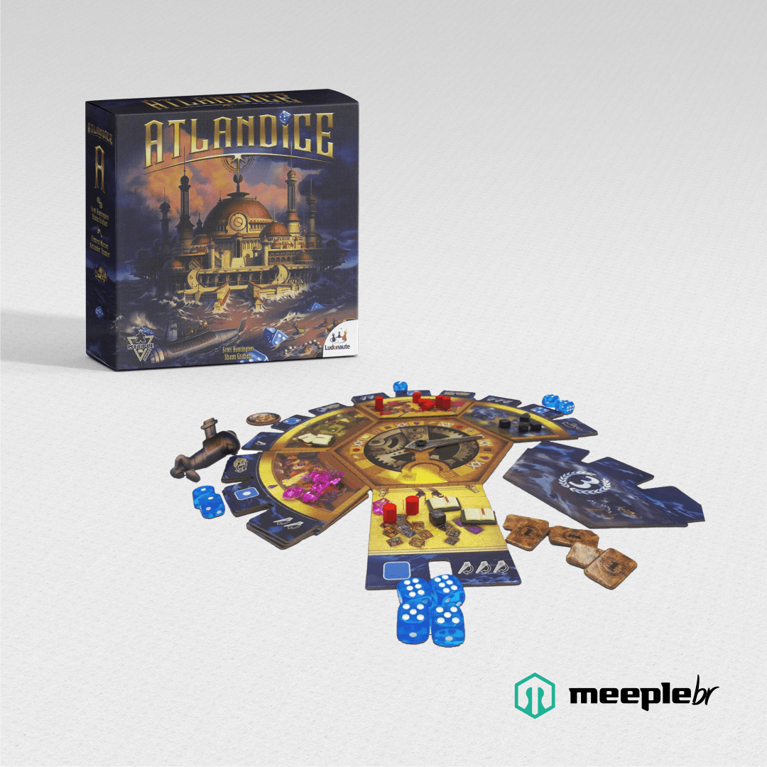Em Atlandice o objetivo é ganhar prestígio, acumulando mais recursos do que seus adversários e pontuando ao final da partida..