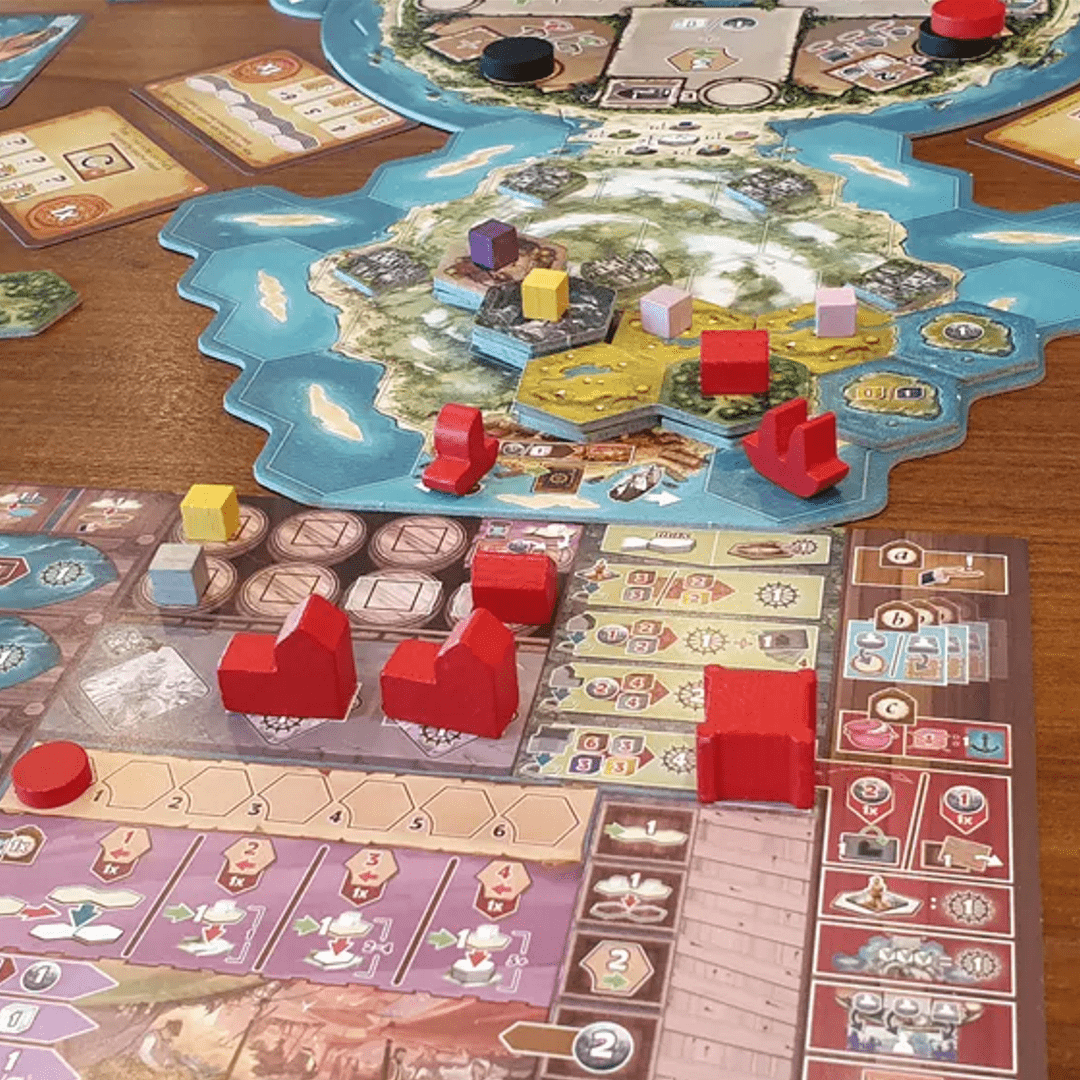 Com dois navios e alguns trabalhadores, cada um de vocês aportou em uma península separada, a qual vocês esperam explorar, cultivar e construir. Mas quem será o melhor? E como? Vocês expandirão rapidamente seu terreno ou gastarão seus esforços cultivando os terrenos, tornando-os mais produtivos e valiosos?
