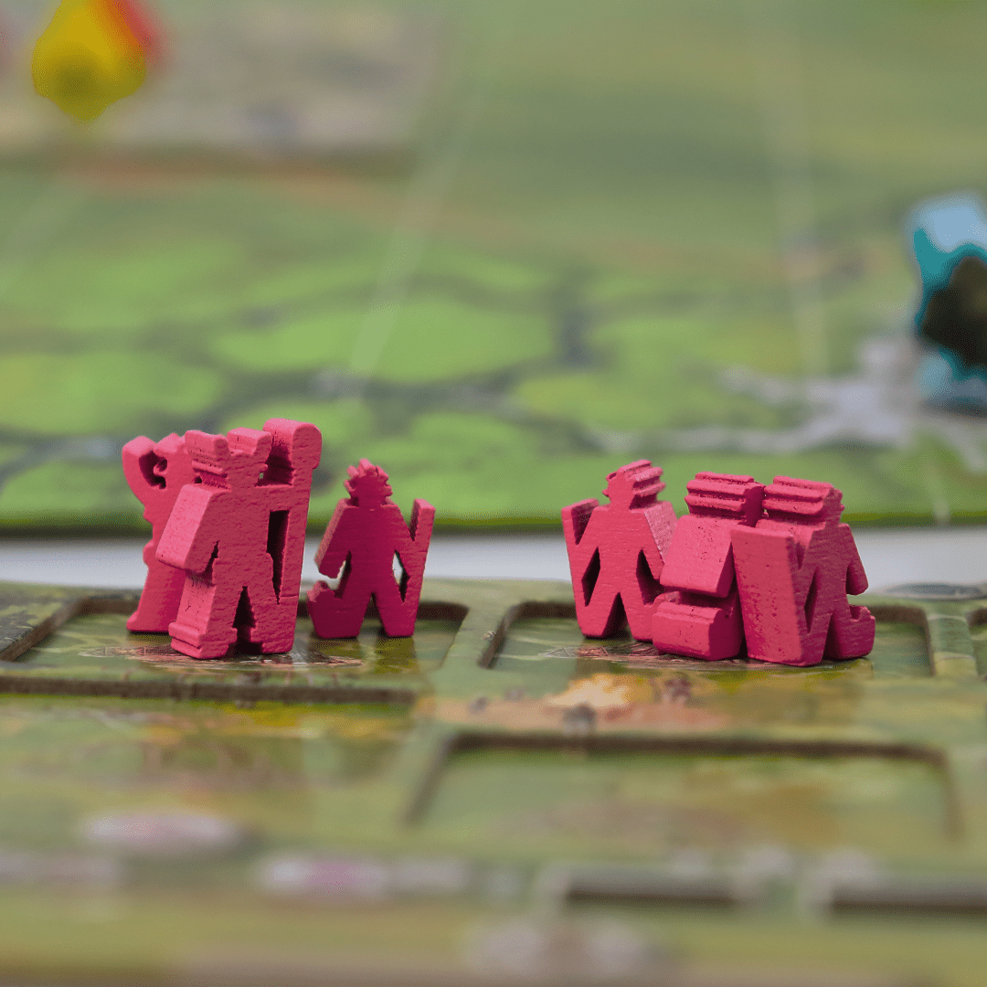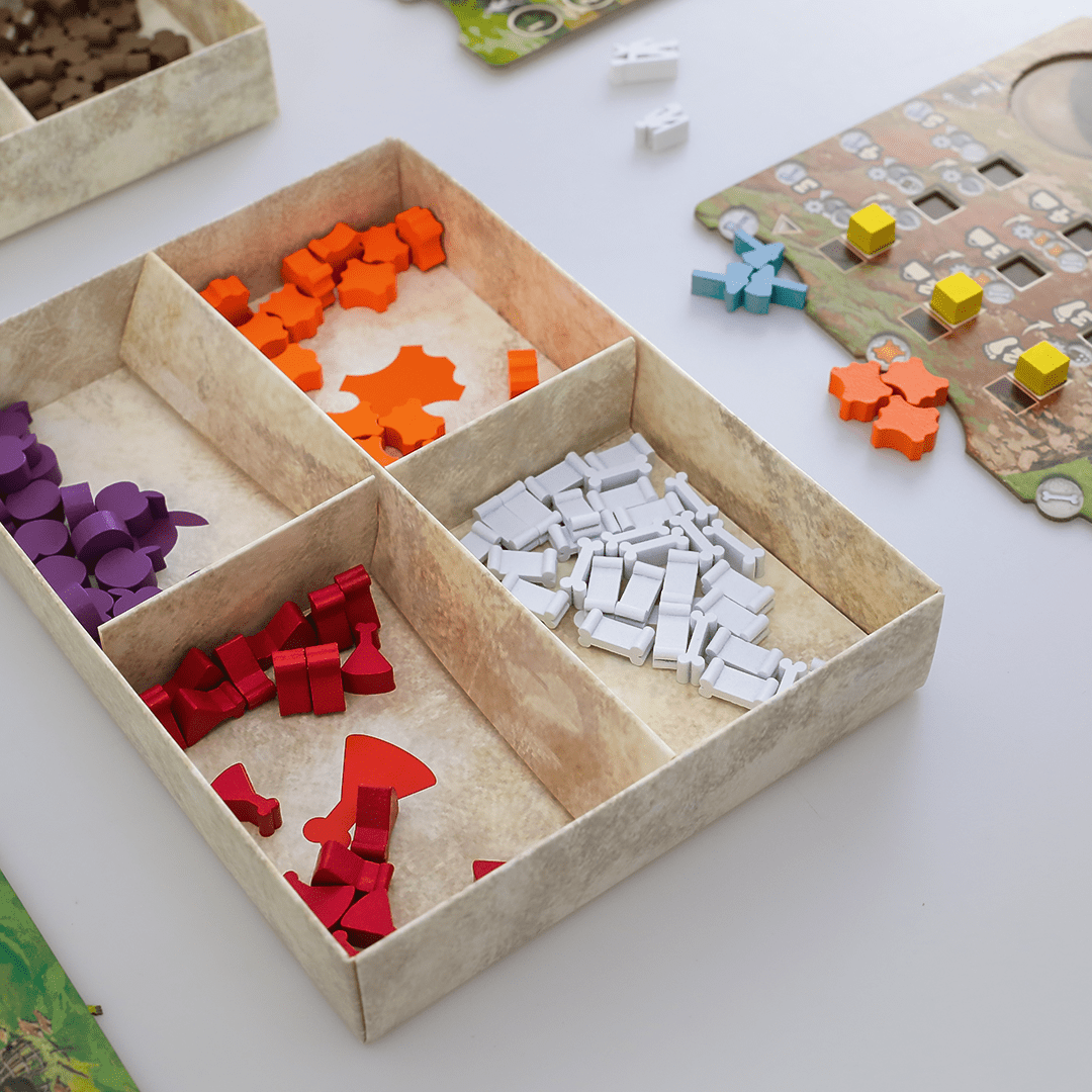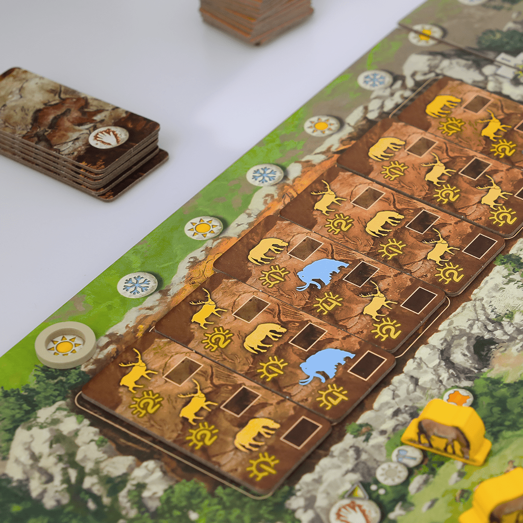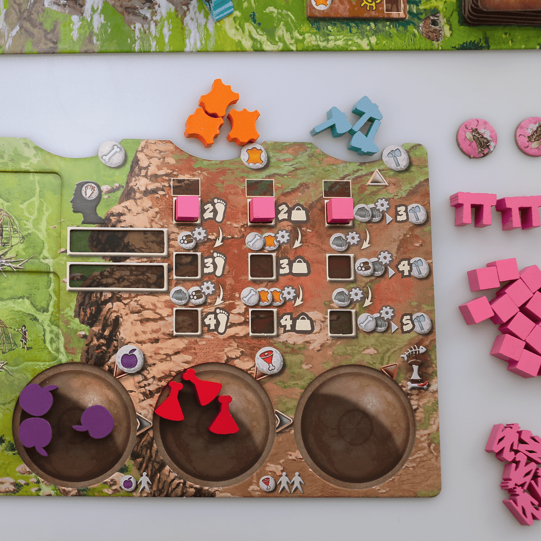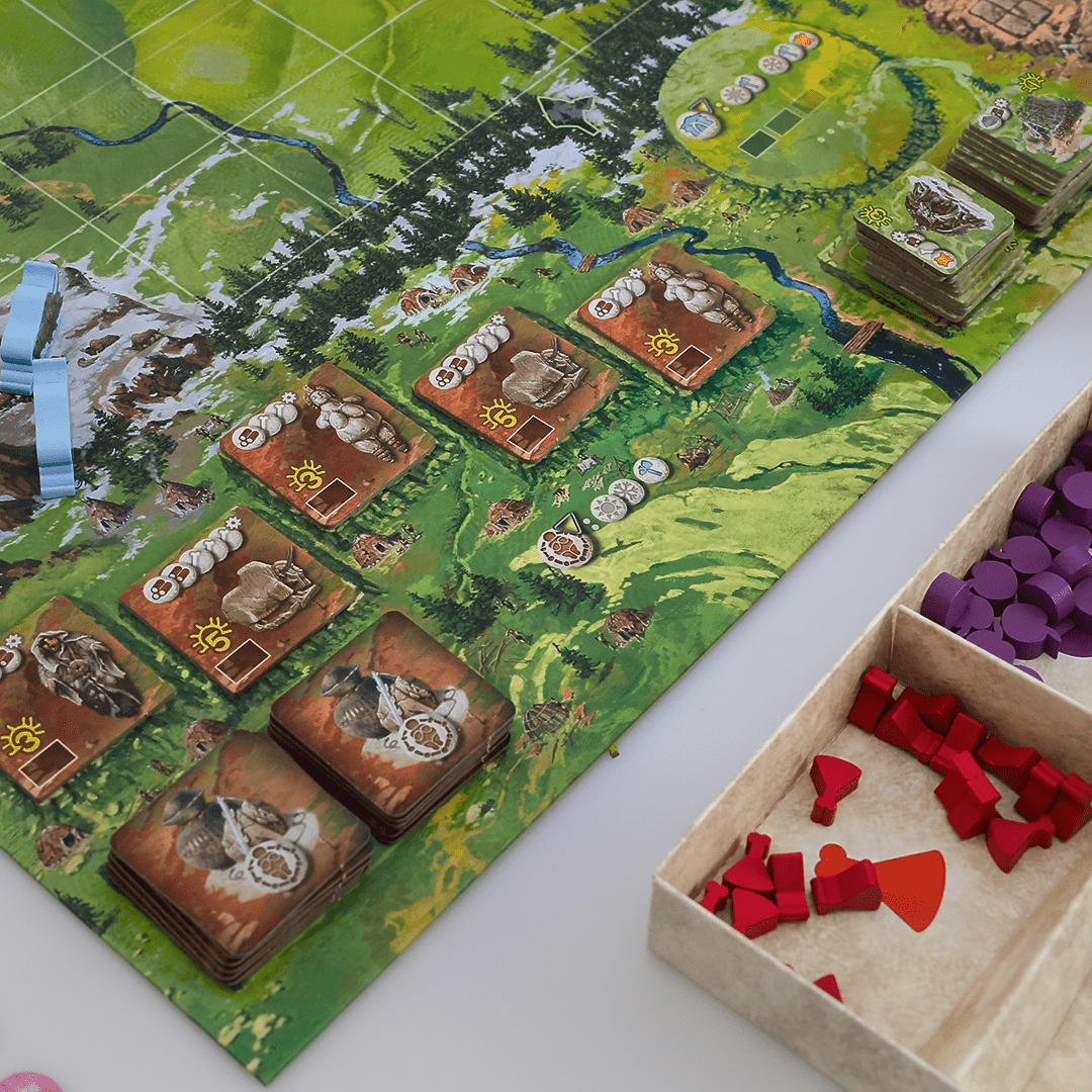 Explore um Território em Constante Mudança. A cada partida, o tabuleiro muda com a disposição das peças modulares. Cada escolha estratégica que você faz é moldada pelo ambiente ao seu redor, bem como pelas ações dos outros jogadores. Como líder do clã, cabe a você aproveitar ao máximo os recursos disponíveis e tomar decisões sábias para prosperar.