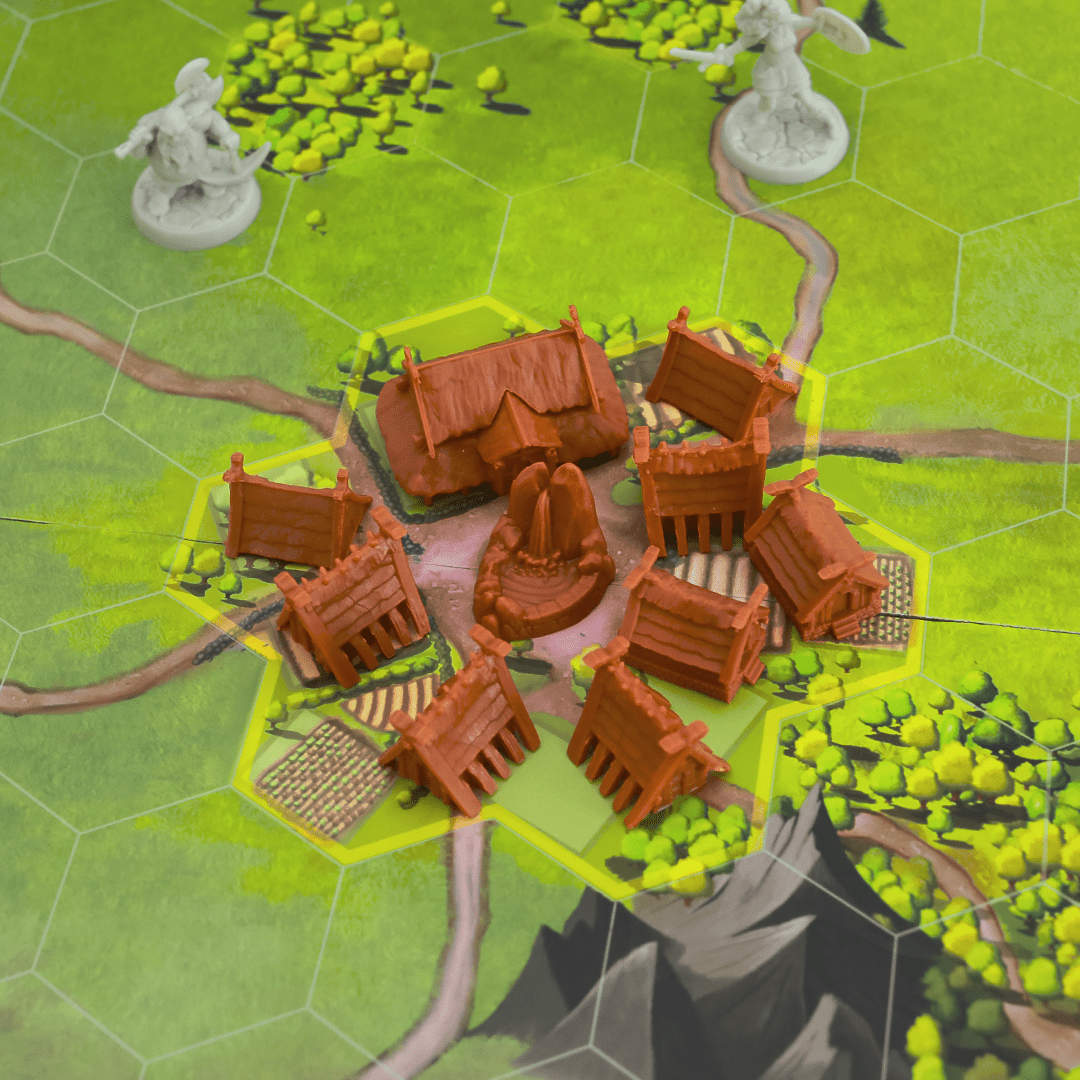 Todos os jogadores perdem se a vila for completamente destruída, mas todos vencem se pelo menos o Poço de Freia estiver inteiro quando ela retornar no final da partida.