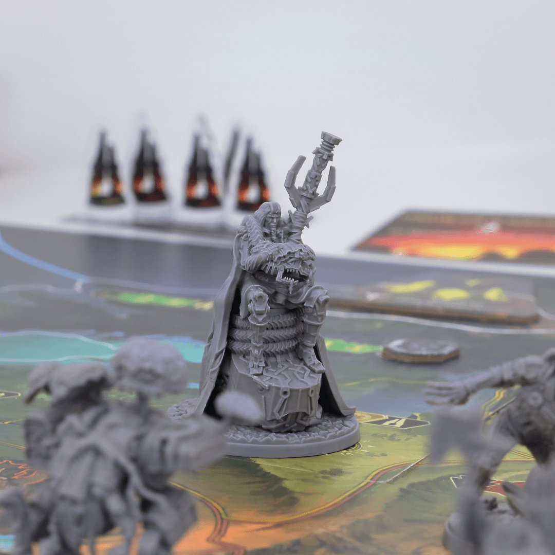 Neste jogo de tabuleiro estratégico para 1 a 4 jogadores, você liderará um herói único e assimétrico e seu exército , tentando ser o vencedor final em uma guerra que se desenrola em aproximadamente 90 a 120 minutos. Os jogadores escolherão entre várias ações, como construir monumentos, caçar monstros, devastar terras, reunir exércitos e artefatos.