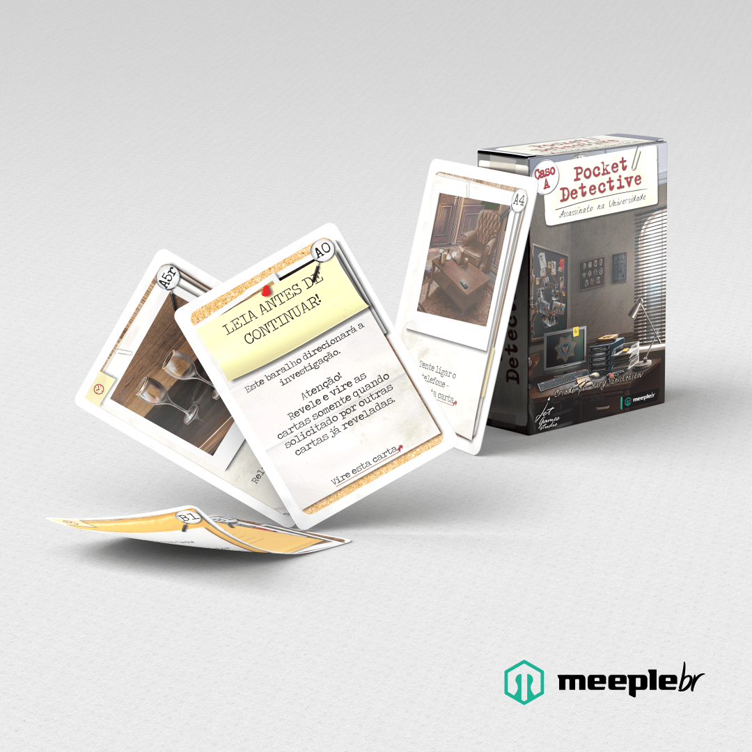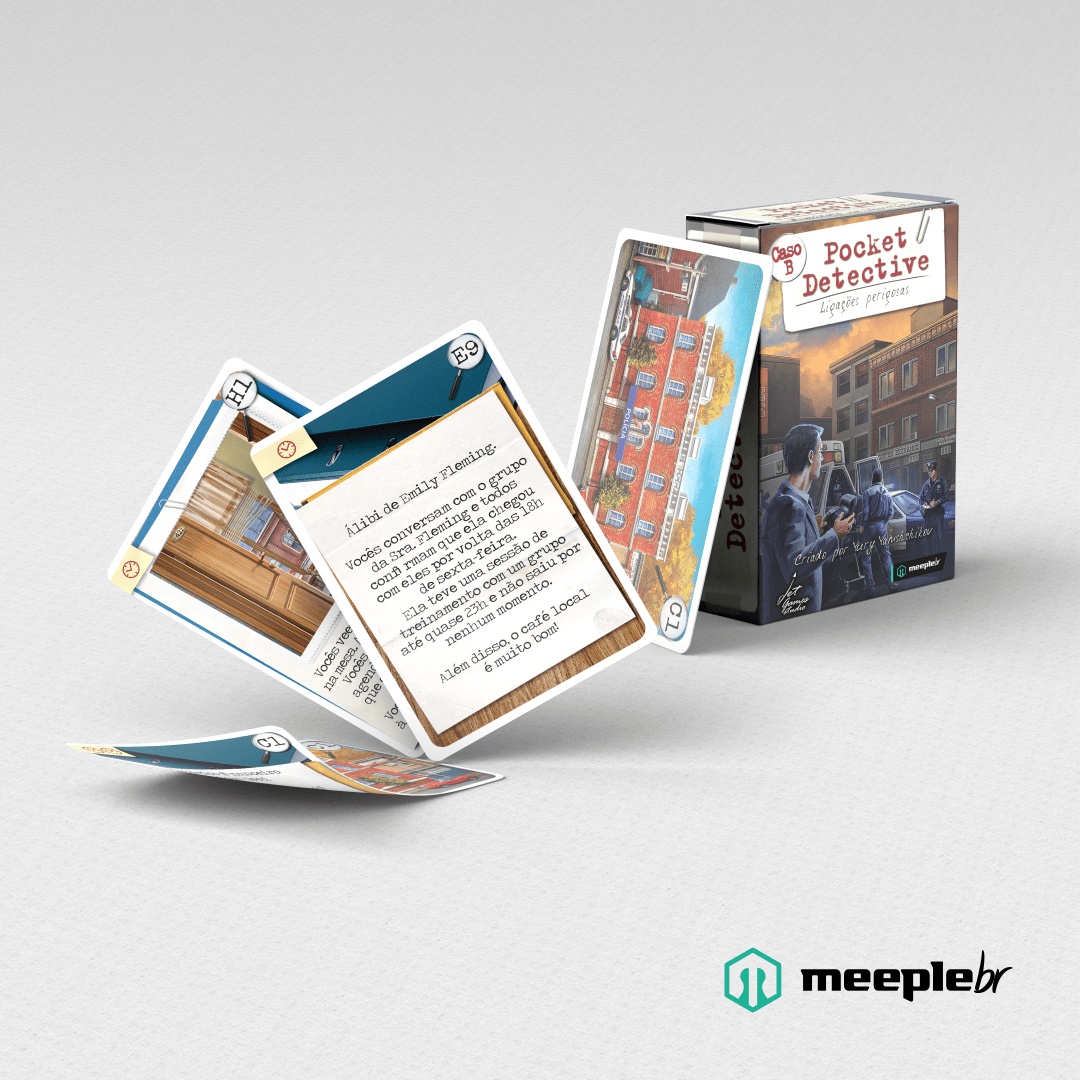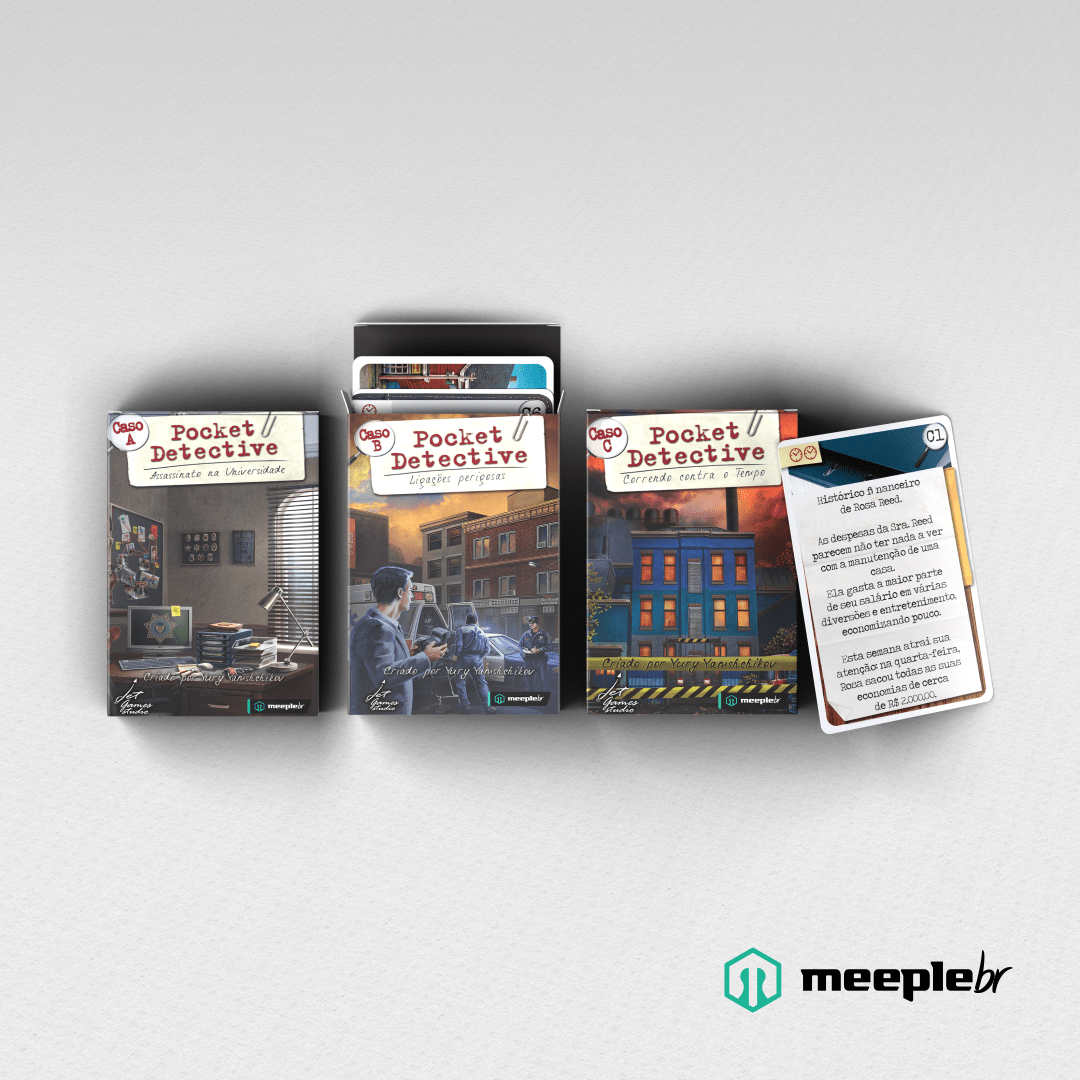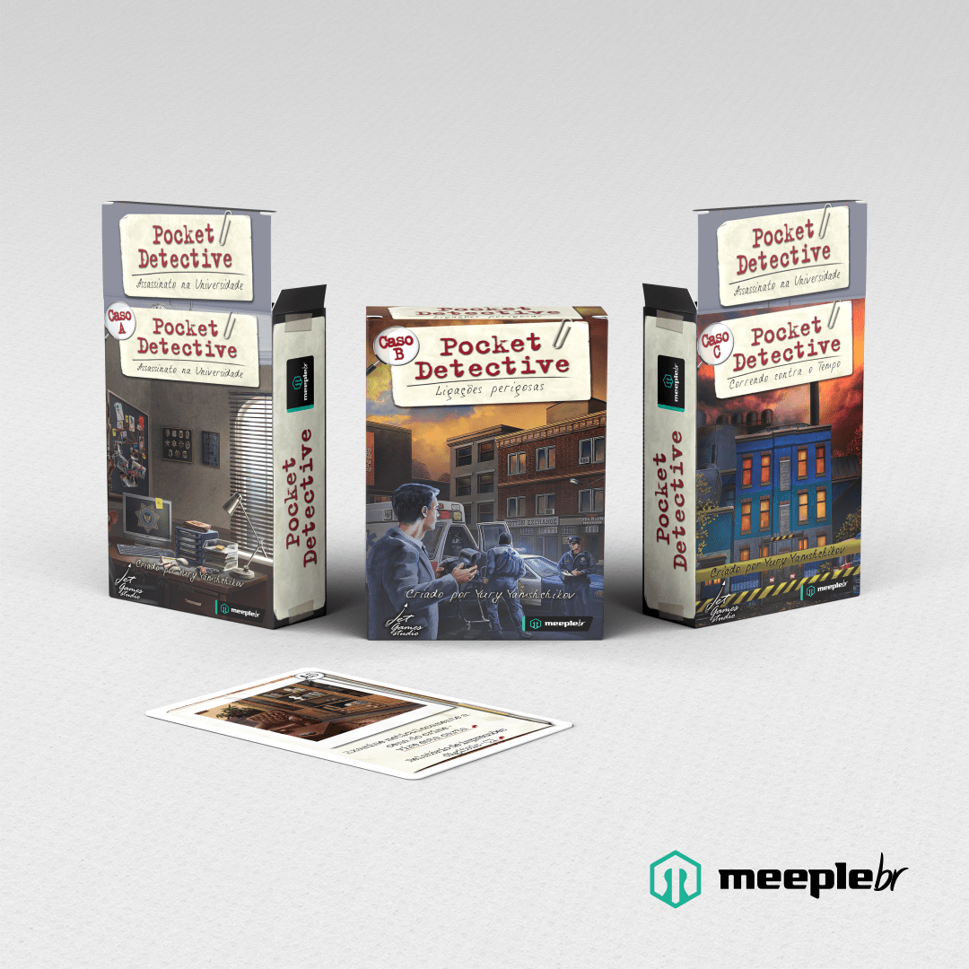 | Pocket Detective é um jogo de cartas cooperativo que vai testar sua dedução. Os jogadores coletam pistas, interrogam suspeitos e resolvem quebra-cabeças de informações para solucionar casos misteriosos e cheios de reviravoltas.