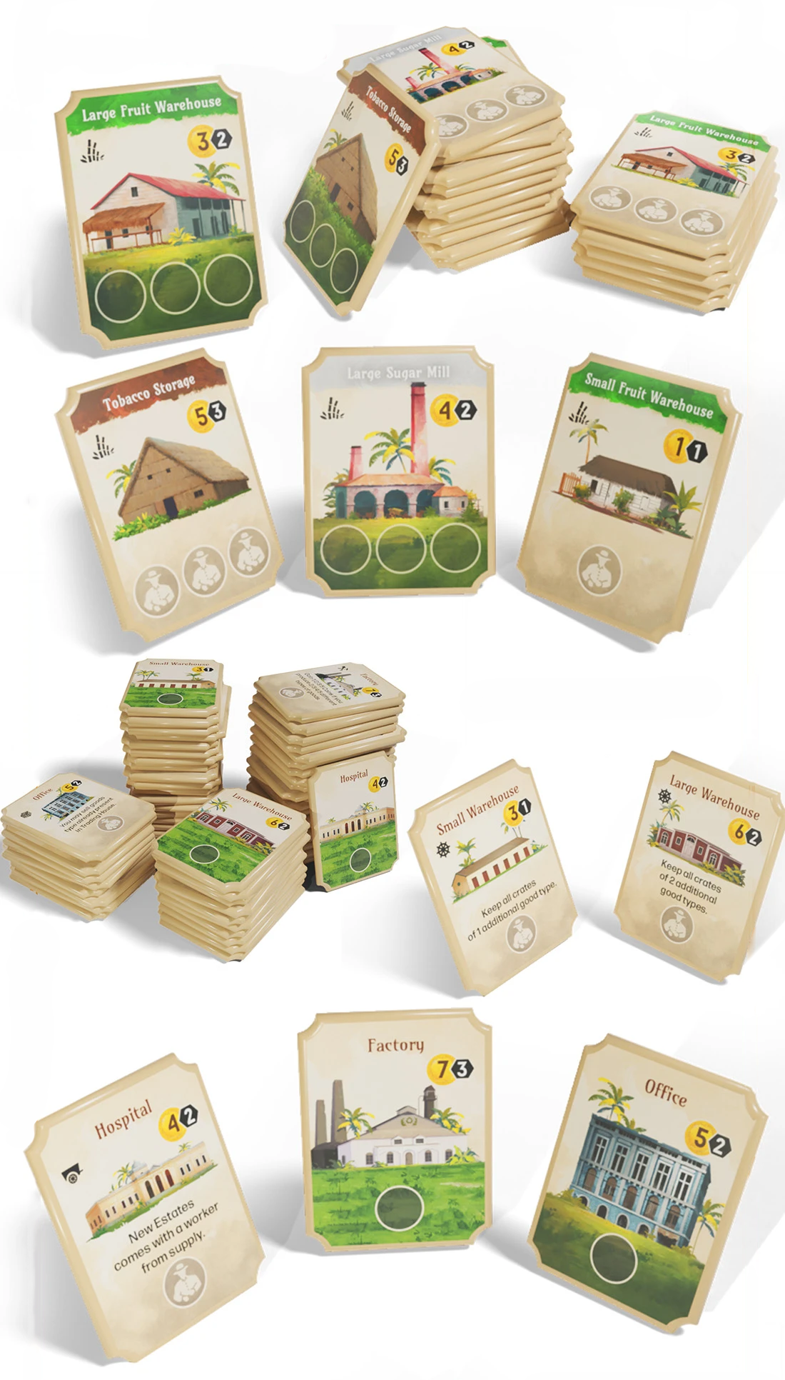 O jogo, para 2 a 4 jogadores, gira em torno da construção de edifícios de produção e especiais, com as cartas sendo usadas tanto como moeda quanto como bens.