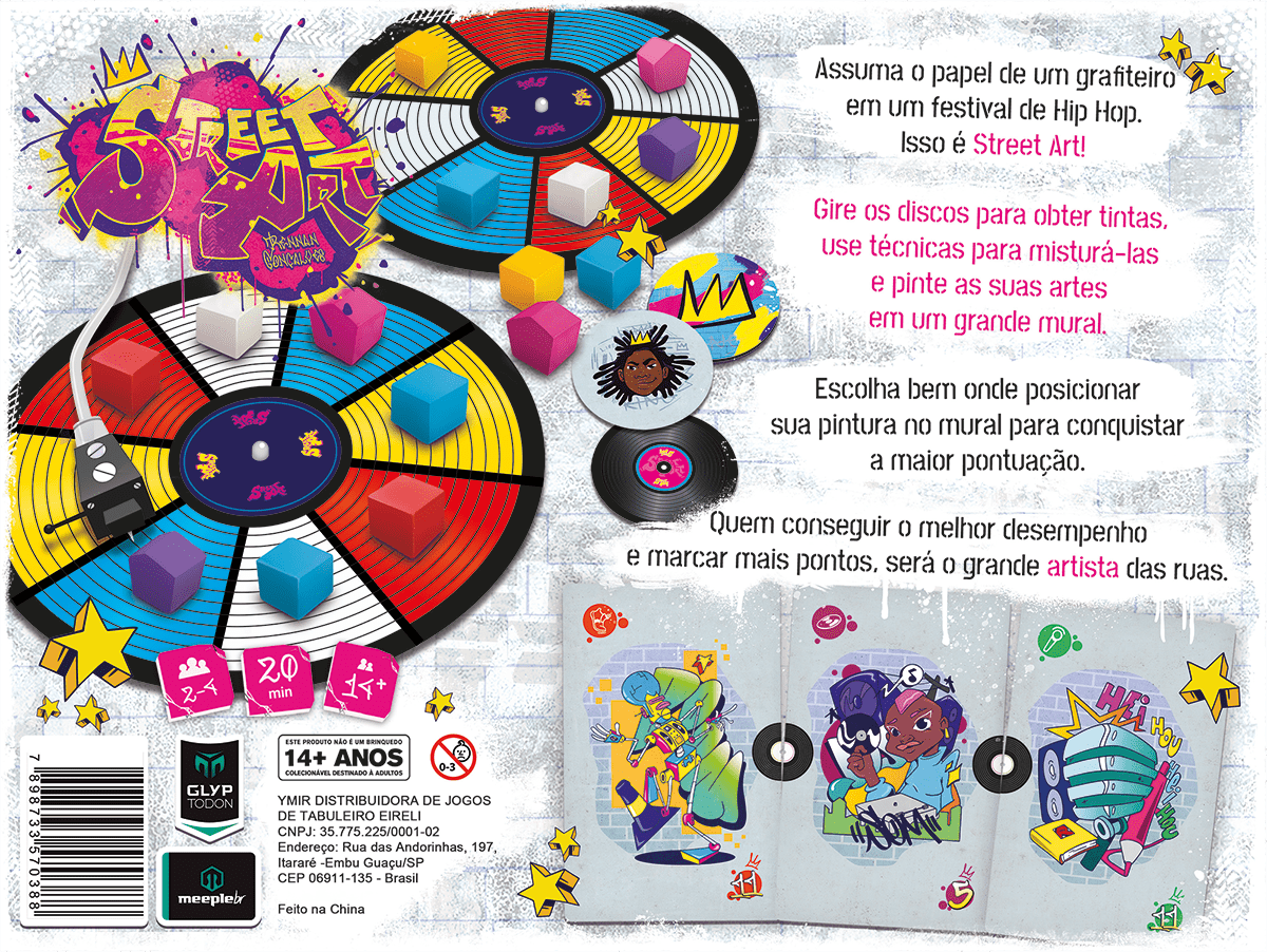Com mecânicas de “pegar e entregar” e “colecionar conjuntos”, Street Art é um jogo rápido e dinâmico que une criatividade e estratégia. Prepare-se para girar discos, misturar tintas e ocupar seu espaço em uma emocionante competição de habilidade e criatividade.