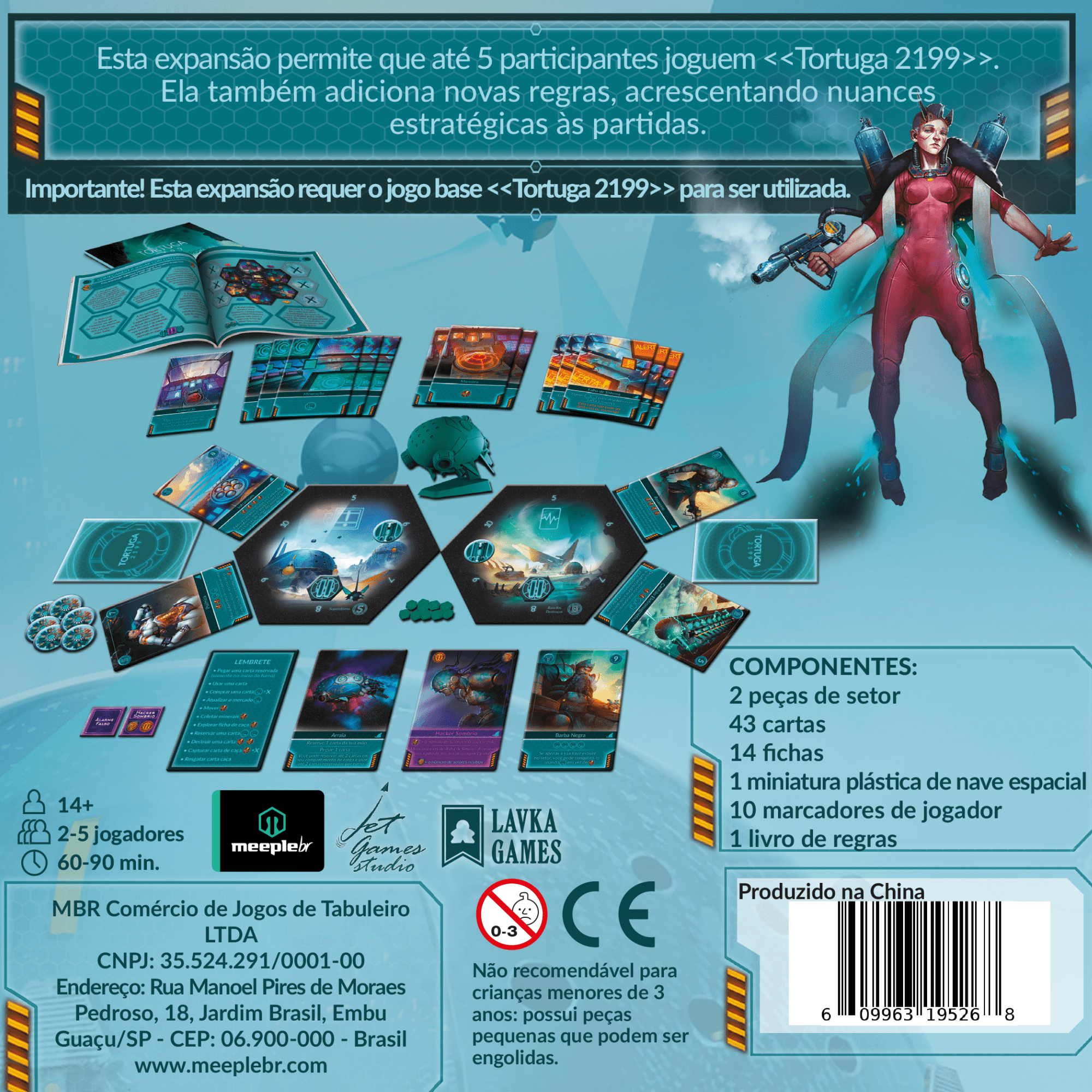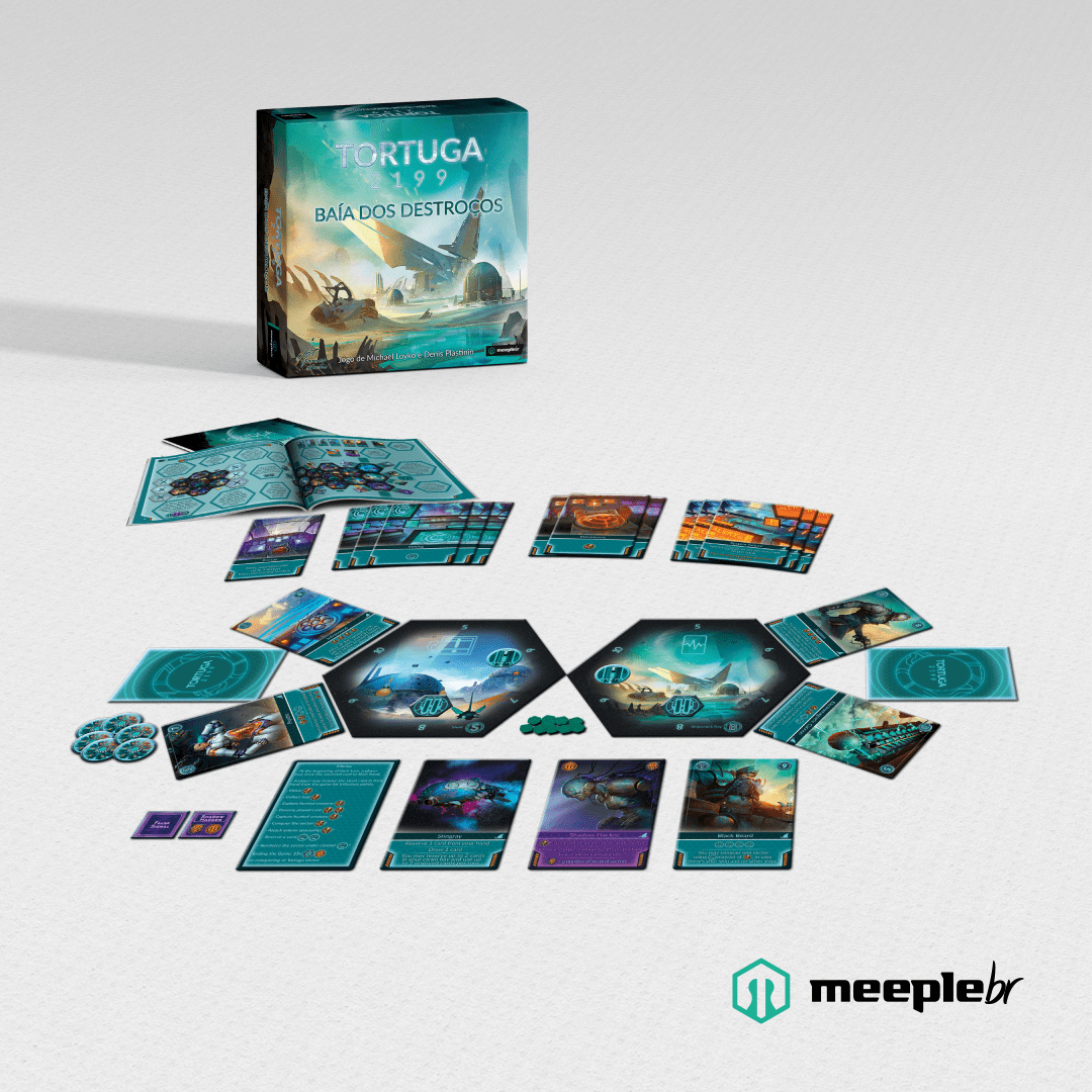 Tortuga 2199 – Baía dos Destroços é uma expansão perfeita para a sua mesa de jogo. Ela traz uma nova nave, a possibilidade de adicionar um quinto jogador, novos setores e regras para as minas flutuantes, cargas explosivas capazes de arrebentar os navios dos seus adversários mais desavisados.