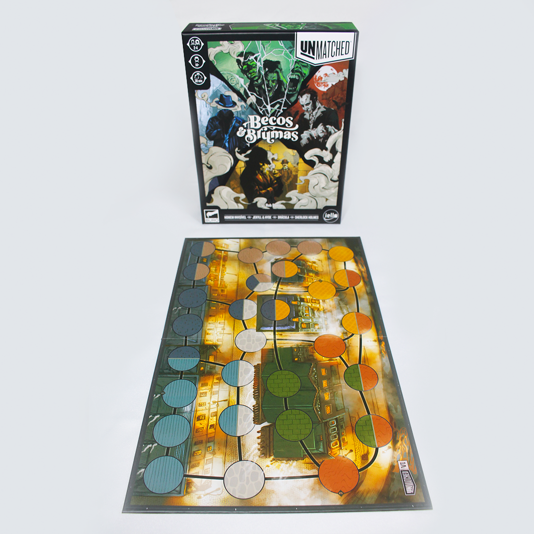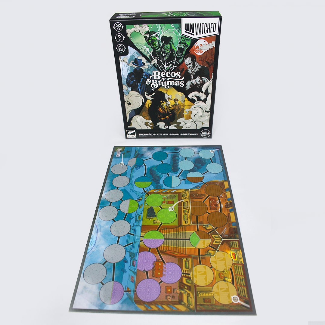 Unmatched: Becos & Brumas apresenta quatro novos heróis para o sistema Unmatched. O Homem Invisível usa o nevoeiro para disparar pelo tabuleiro e atacar sem aviso. Sherlock, com o fiel Watson ao seu lado, planeja e calcula para garantir a vitória. Drácula e as irmãs lentamente drenam seu poder. Jekyll & Hyde usa a astúcia do primeiro e a força bruta do último para vencer o dia.