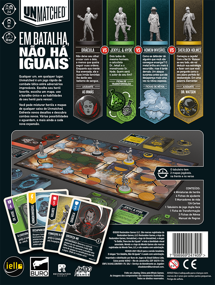 Unmatched é um jogo de luta em miniatura altamente assimétrico para dois ou quatro jogadores. Cada herói é representado por um baralho exclusivo projetado para evocar seu estilo e lenda. Movimento tático e resolução de combate sem sorte criam uma experiência de jogo única que recompensa a experiência, mas apenas quando você domina um set, novos heróis chegam para fornecer todos os novos confrontos.