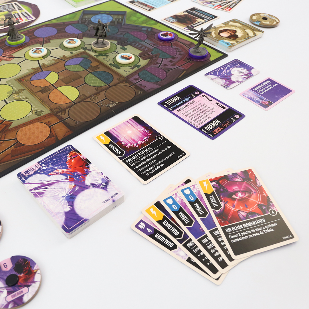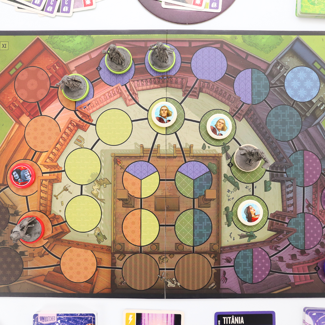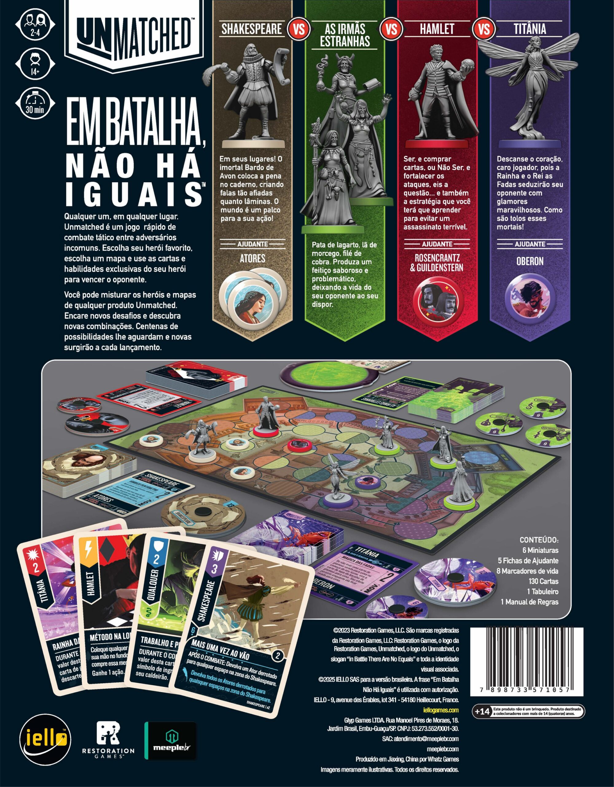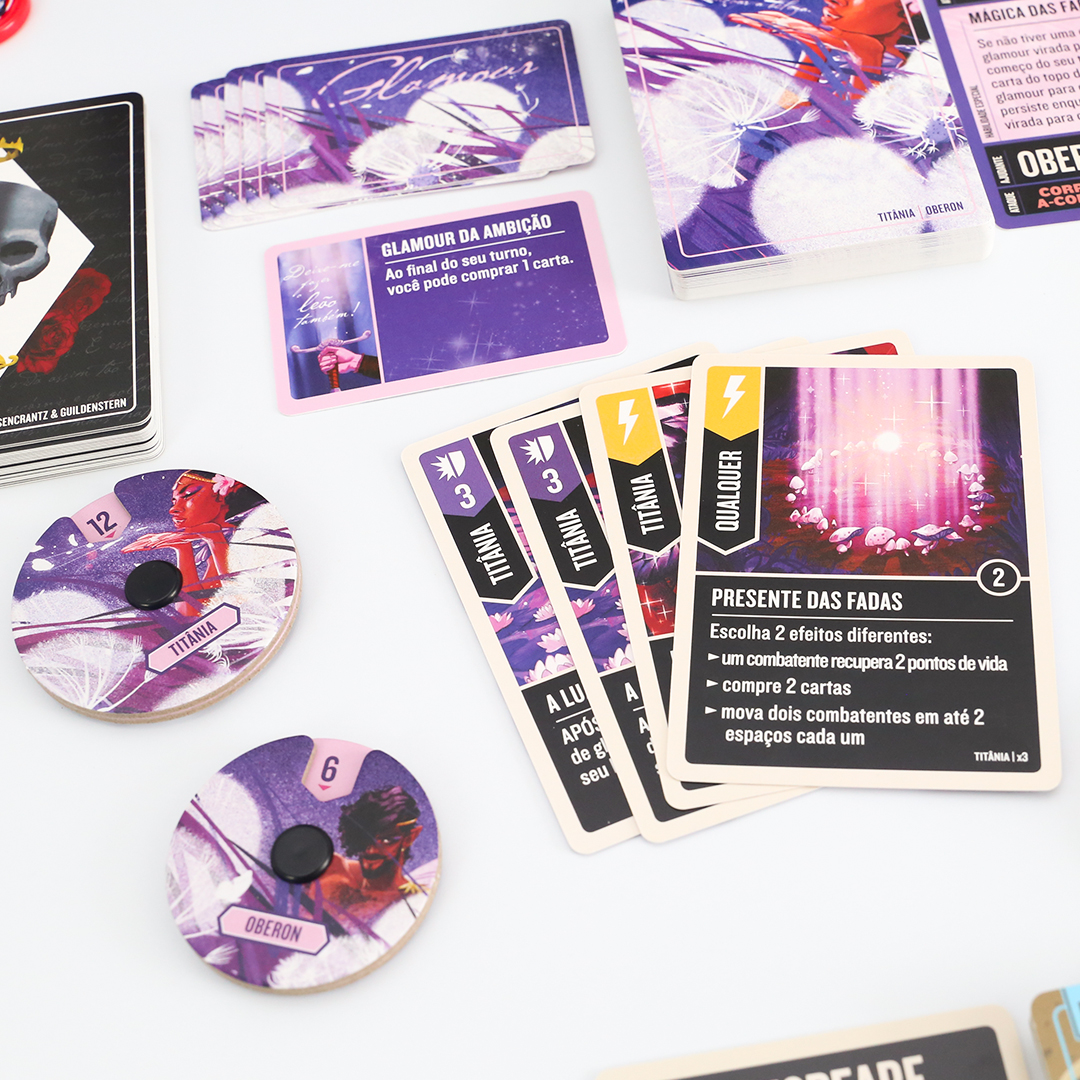 O mundo inteiro é um palco em Unmatched: Fundas e Flechas, enquanto o Globe Theatre é um campo de batalha. William Shakespeare entra na luta junto com três de seus personagens maravilhosos: As Irmãs Estranhas, Hamlet e Titânia. O baralho de Shakespeare, criado por Jonathan Guberman, foi um dos baralhos vencedores em uma competição de design de 2020 e recompensa os jogadores por completarem linhas em pentâmetro iâmbico. O baralho d’As Irmãs Estranhas, vice-campeão nessa competição de Jason Hager, é um deck multi-herói que desafia você a dar vida às maquinações de poções das bruxas com uma coordenação astuta.