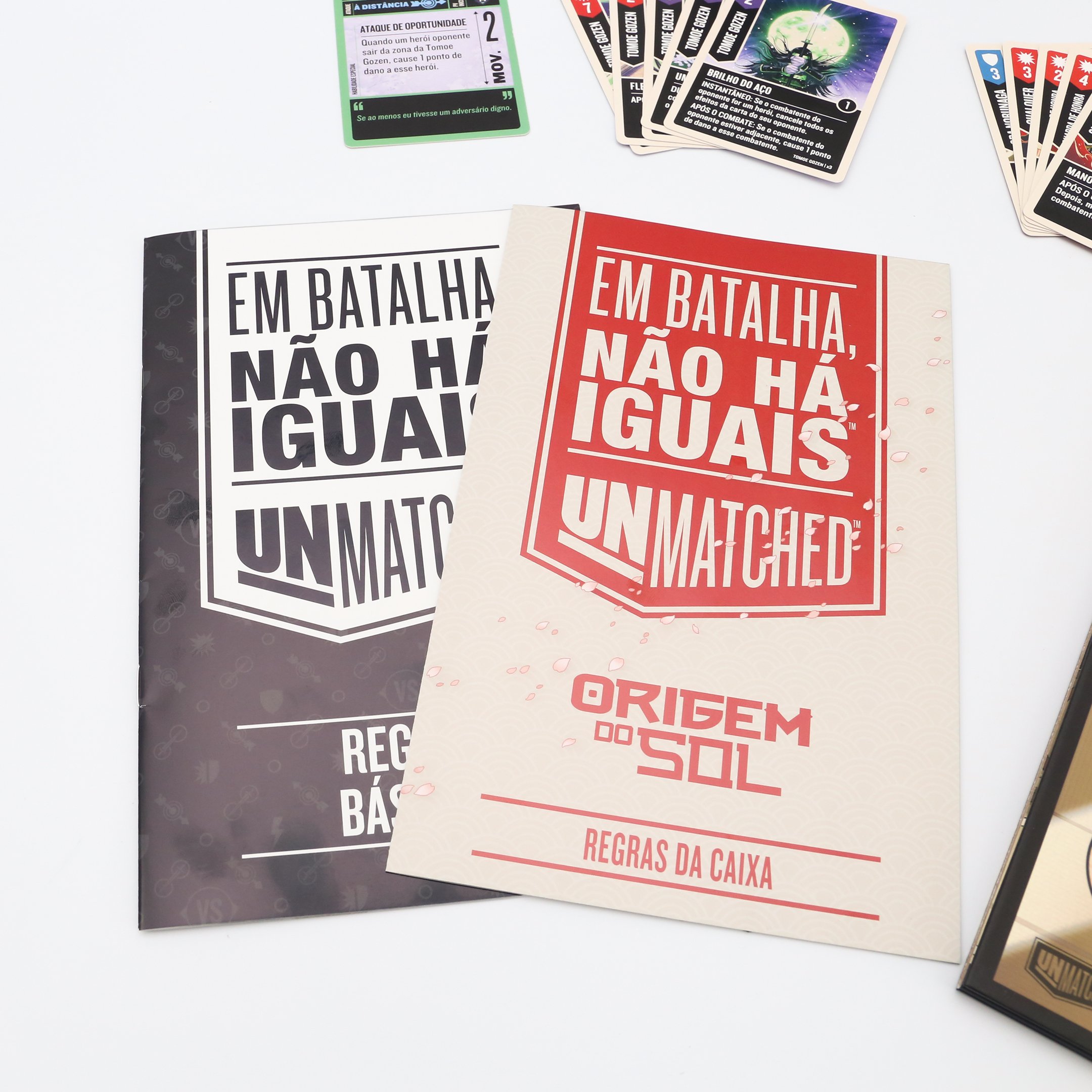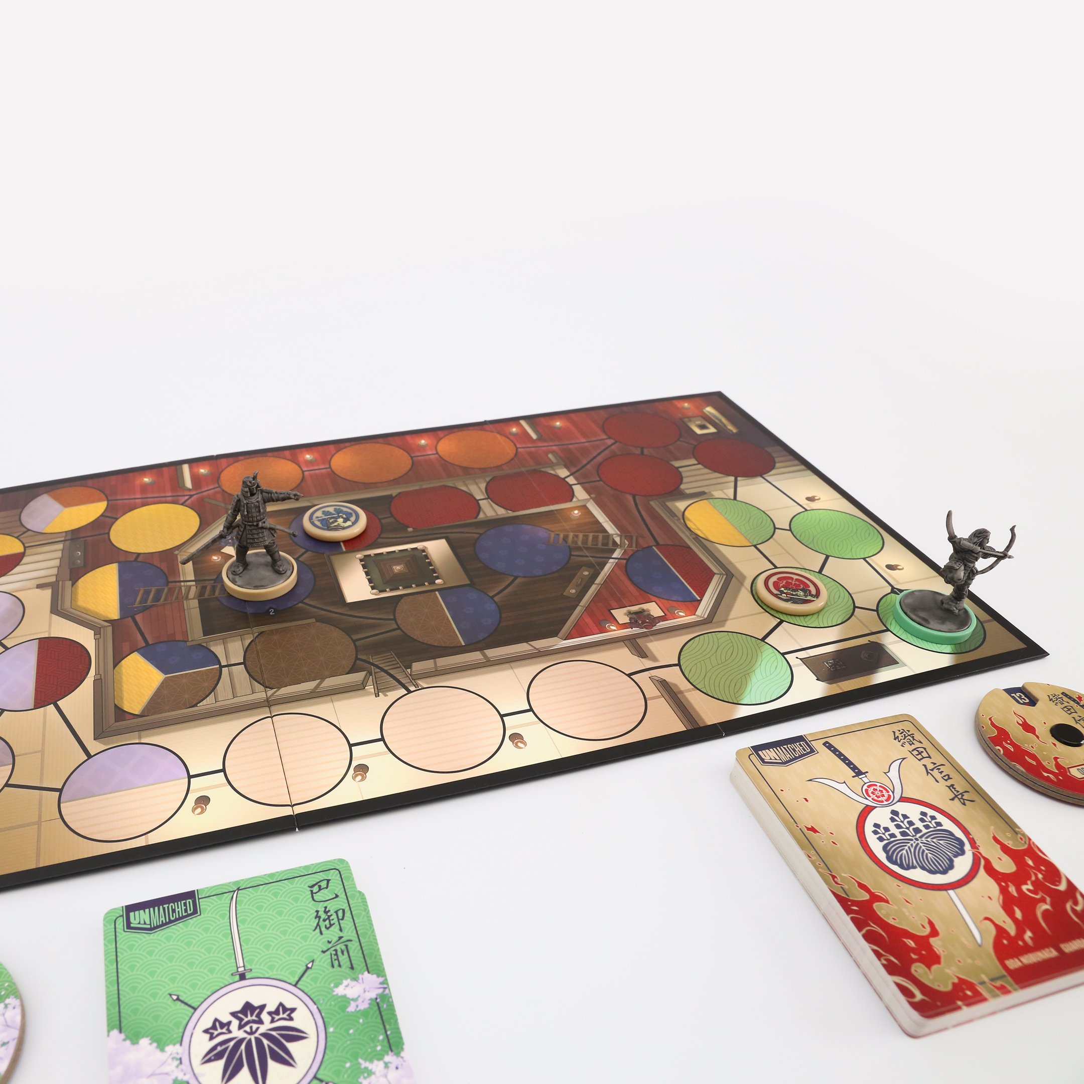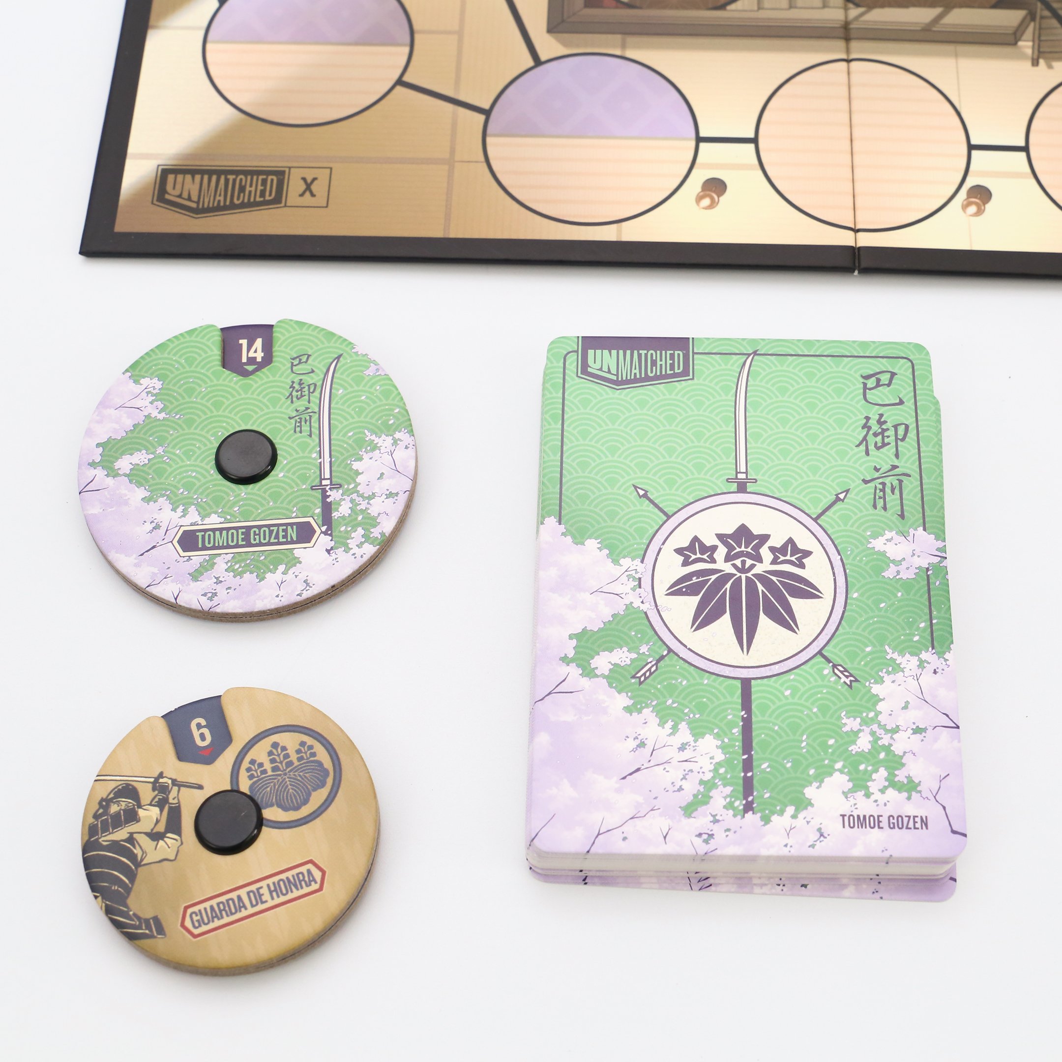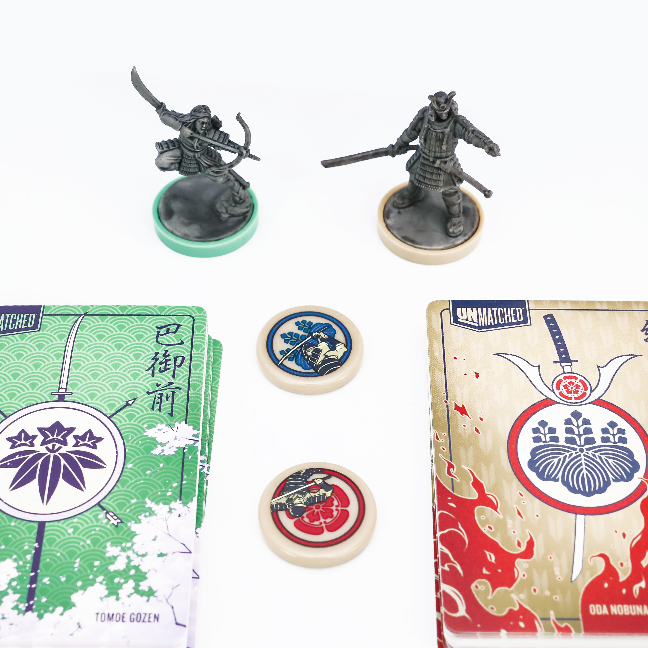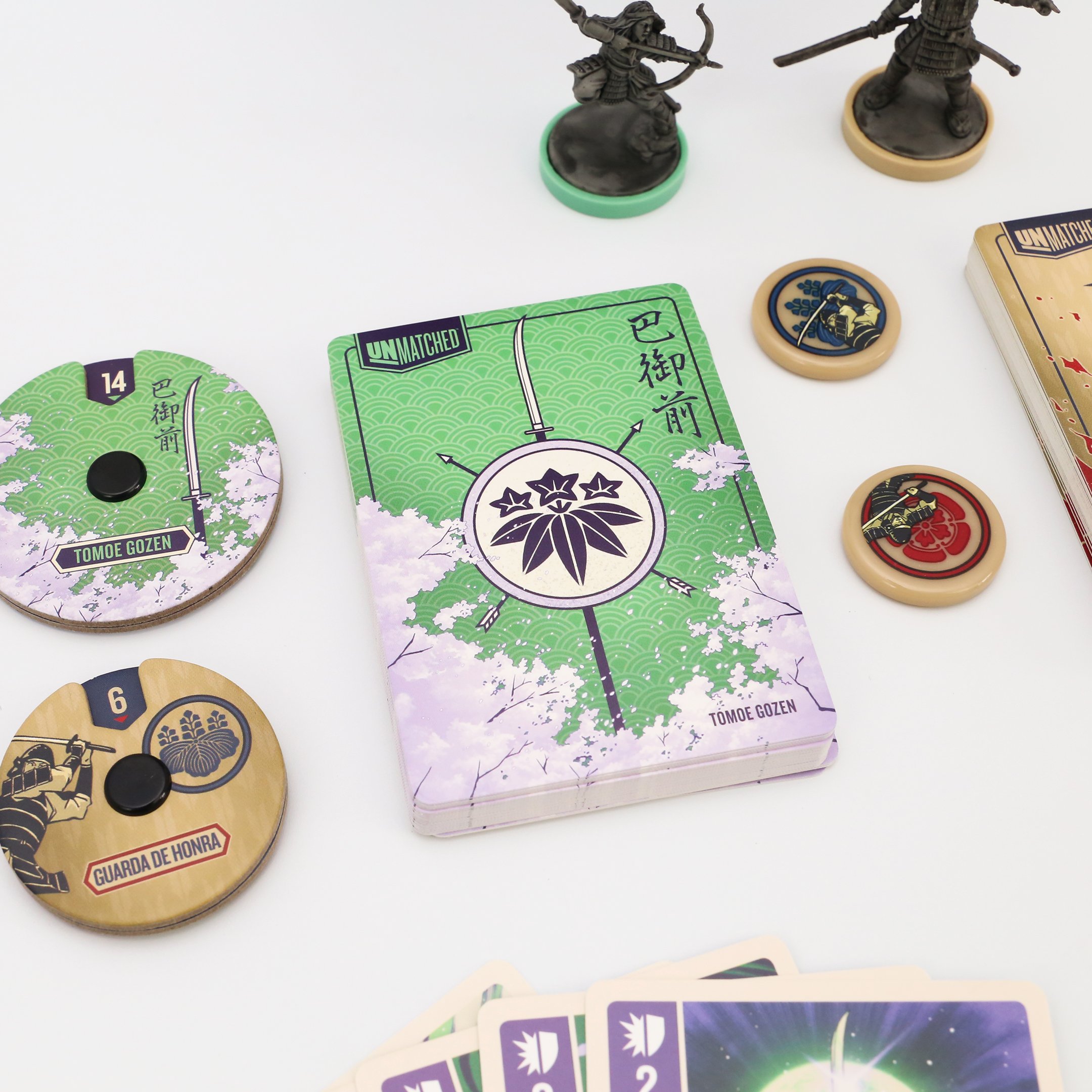 Oda Nobunaga e Tomoe Gozen se enfrentam em mais uma batalha épica, agora elevando o nível do combate Unmatched para terras orientais. O conjunto Unmatched: Origem do Sol apresenta obras de arte impressionantes de Yuta Onoda, com consultoria cultural de Saigo.