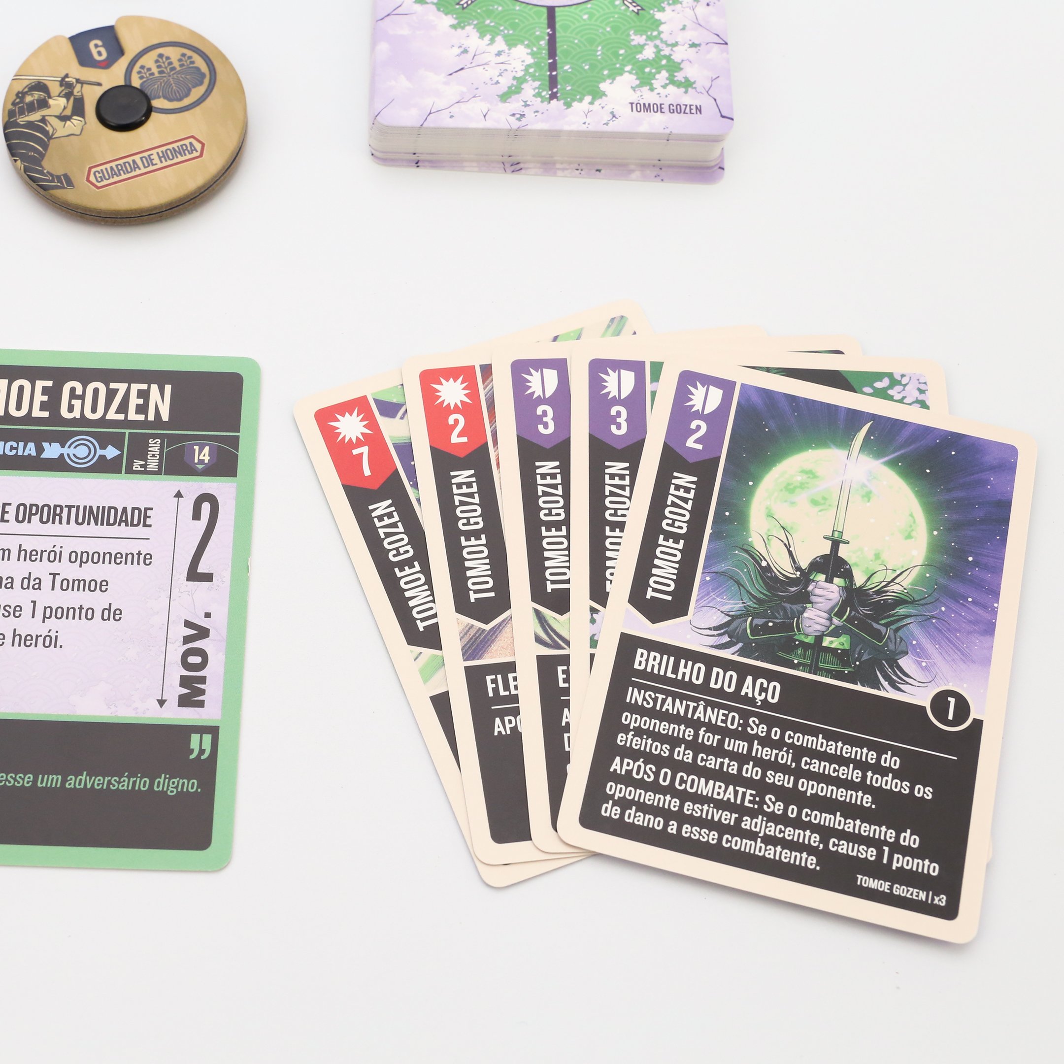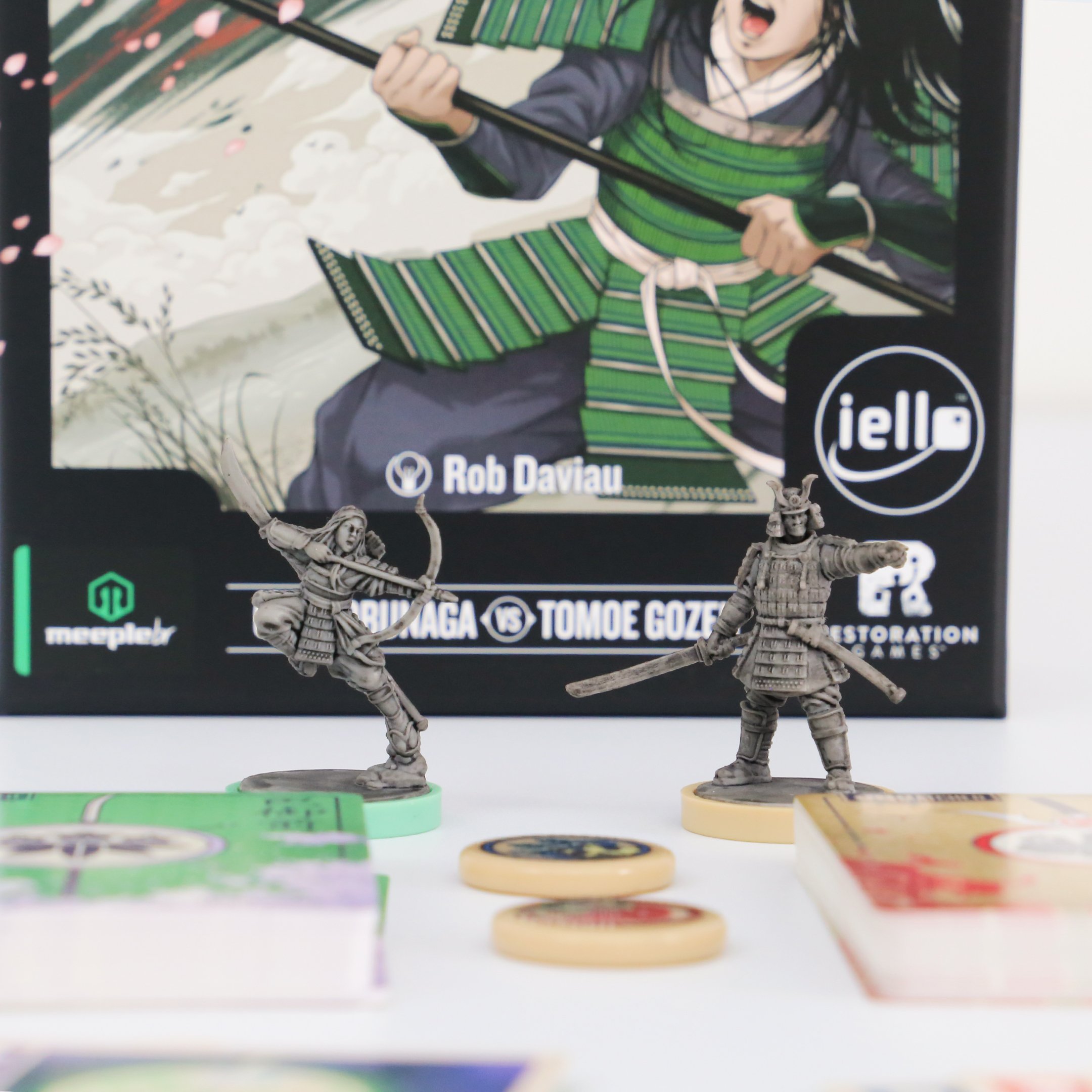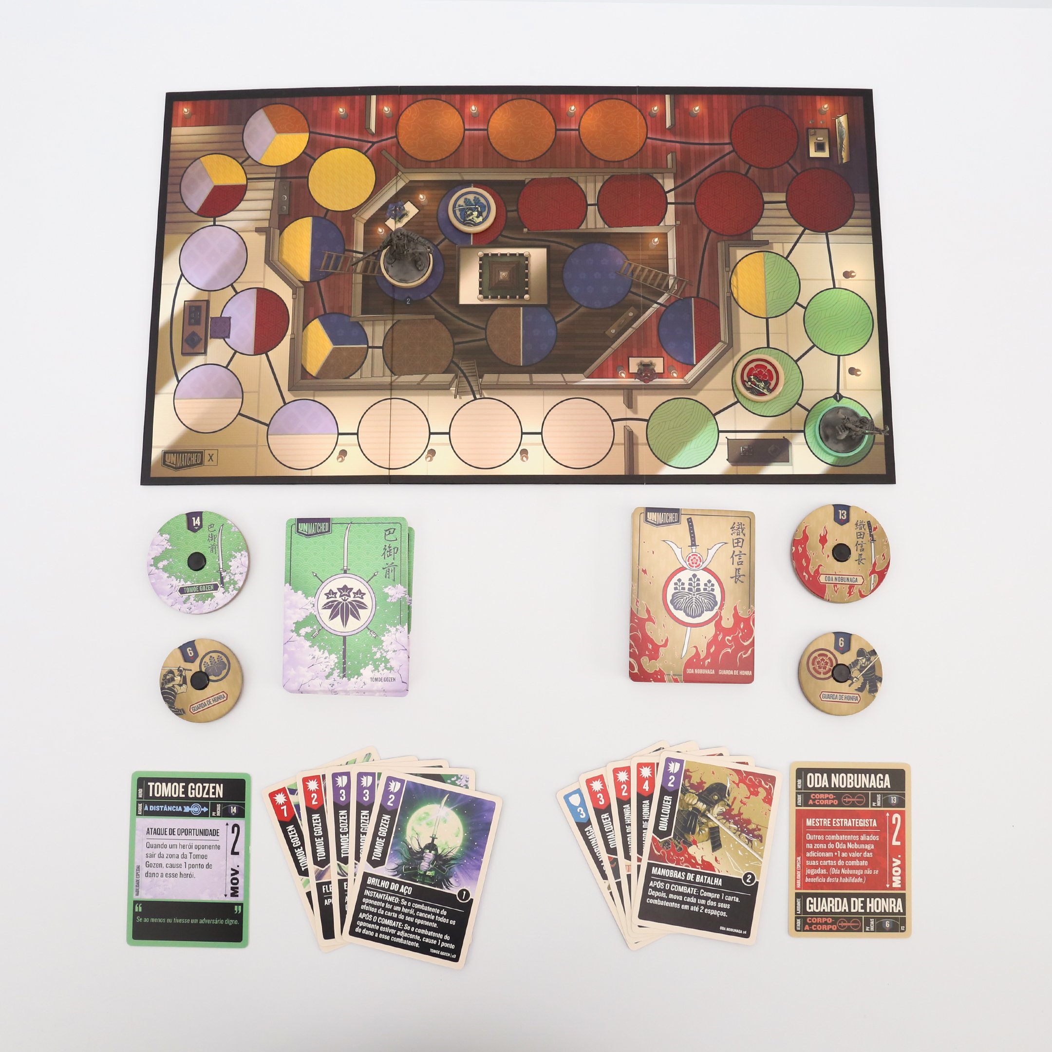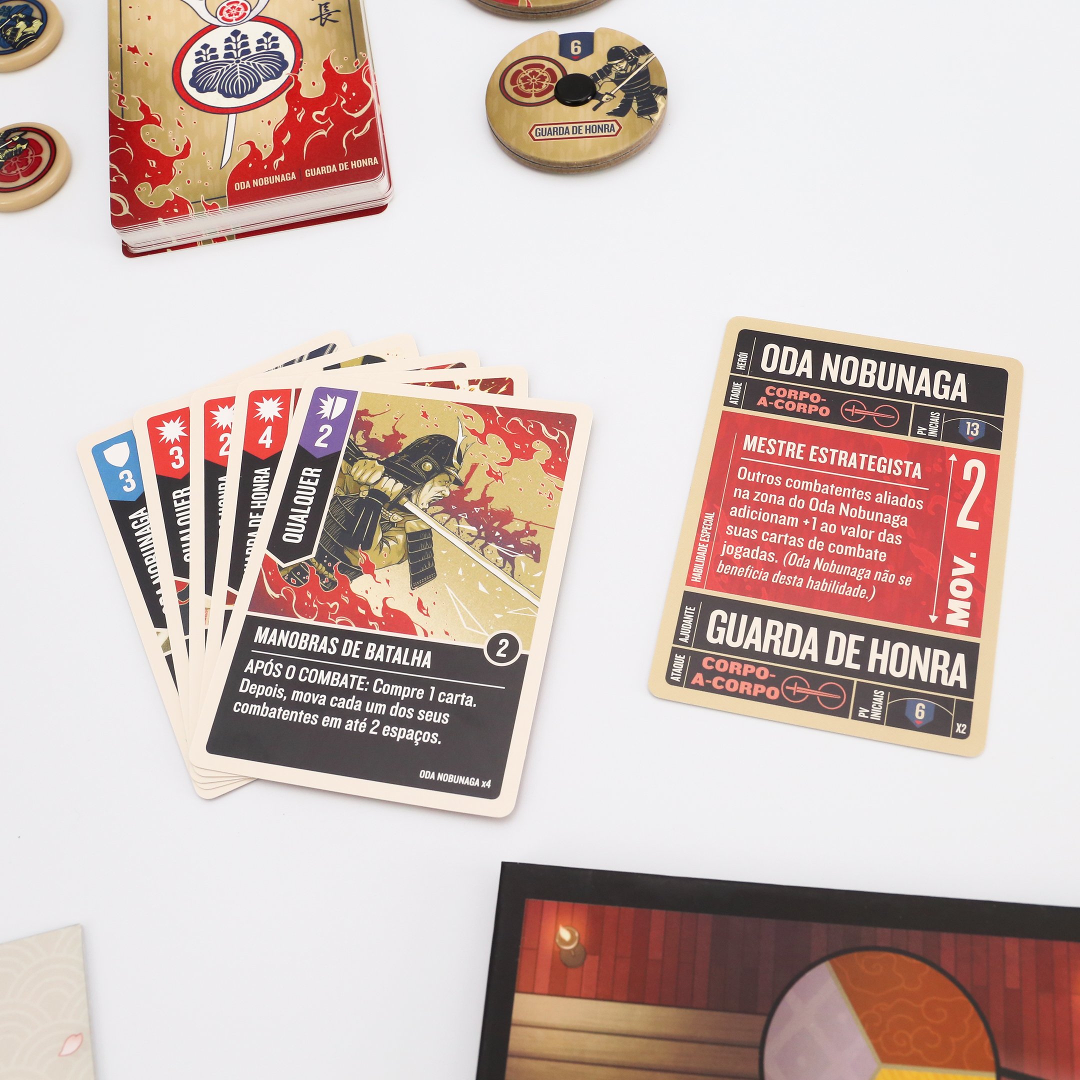 Oda Nobunaga e Tomoe Gozen se enfrentam em mais uma batalha épica, agora elevando o nível do combate Unmatched para terras orientais. O conjunto Unmatched: Origem do Sol apresenta obras de arte impressionantes de Yuta Onoda, com consultoria cultural de Saigo.