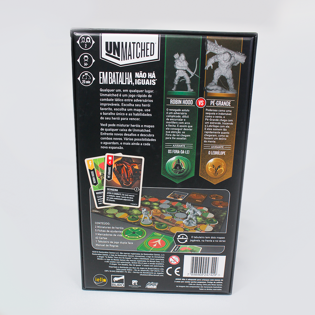 Unmatched é um jogo de luta em miniatura altamente assimétrico para dois ou quatro jogadores. Unmatched: Robin Hood x Pé-Grande é um jogo para dois jogadores, mas pode ser combinado com outros conjuntos da linha Unmatched, expandindo para até quatro jogadores.