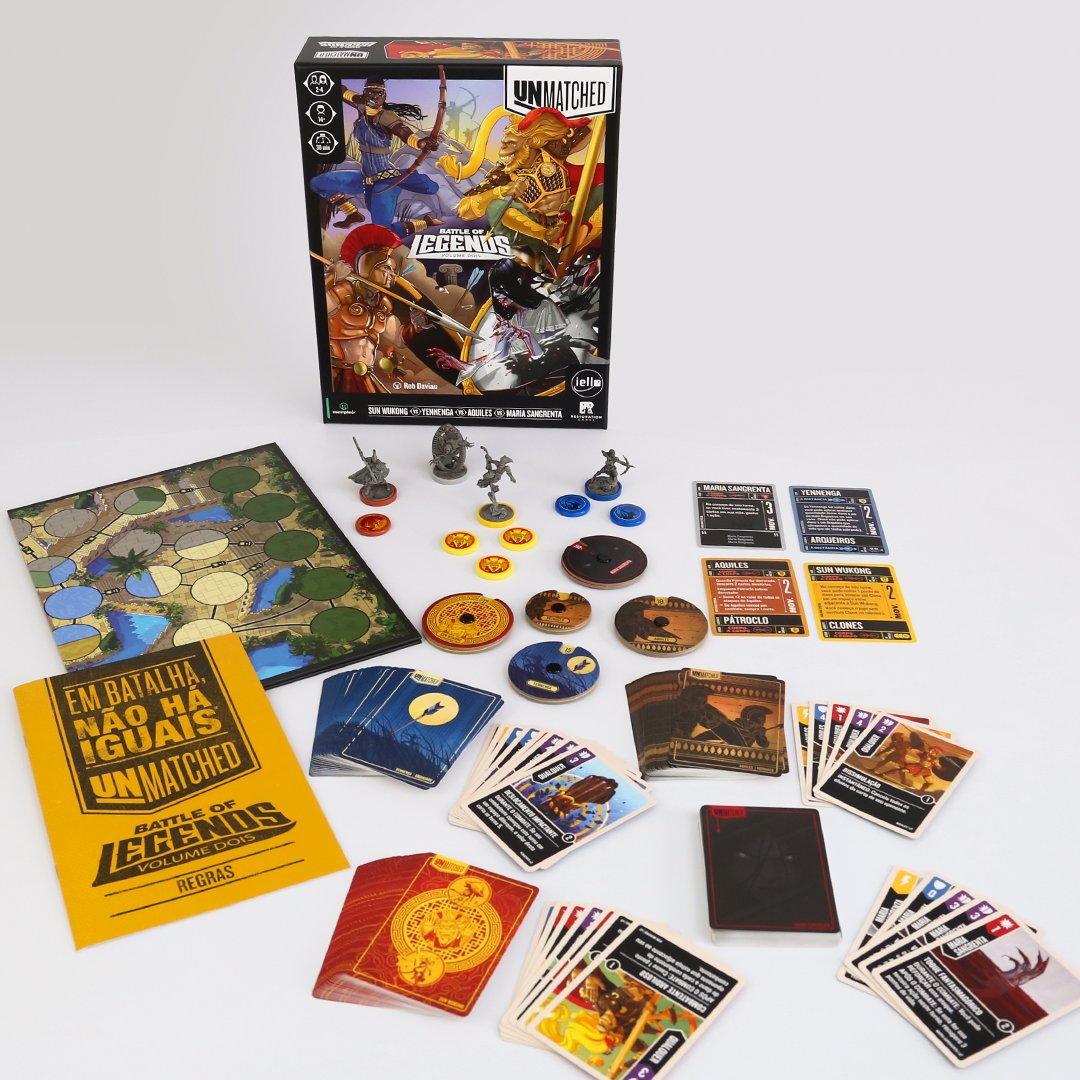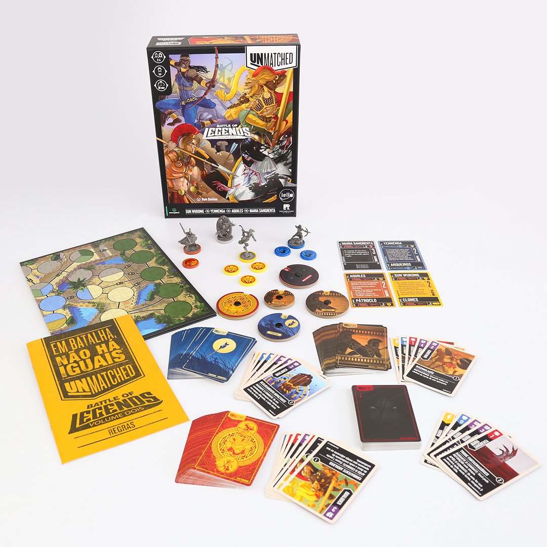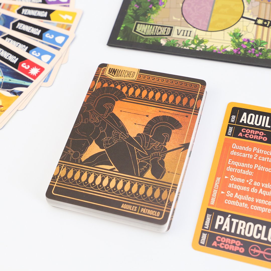 Unmatched é um jogo de duelos com miniaturas que coloca frente a frente combatentes de todos os tipos: heróis das páginas, das telas e aqueles que se tornaram lendas, cada um deles com um baralho exclusivo, meticulosamente projetado para refletir seu estilo de luta característico.